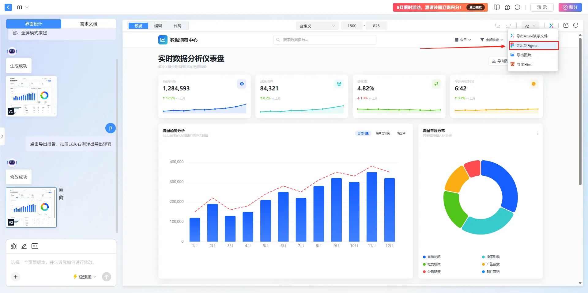 功能探索导出功能本页总览导出功能导出功能 在 GemDesign 中完成精彩的设计和原型只是第一步!轻松将你的成果导出为行业通用格式,无缝对接评审、协作、开发或演示的下一个环节。GemDesign 绝不将你的设计“锁”在单一平台里! 导出 Axure 演示文件 无缝导入协作平台: 生成的axurer演示文件可以导入到主流在线协作/评审平台(如pixso、墨刀等),方便团队成员直接在熟悉的环境中查看、评论。 注意: 此格式为axure演示文件(非 .rp 源文件,无法用axure打开)。如想导入成rp文件,参见下方第3点