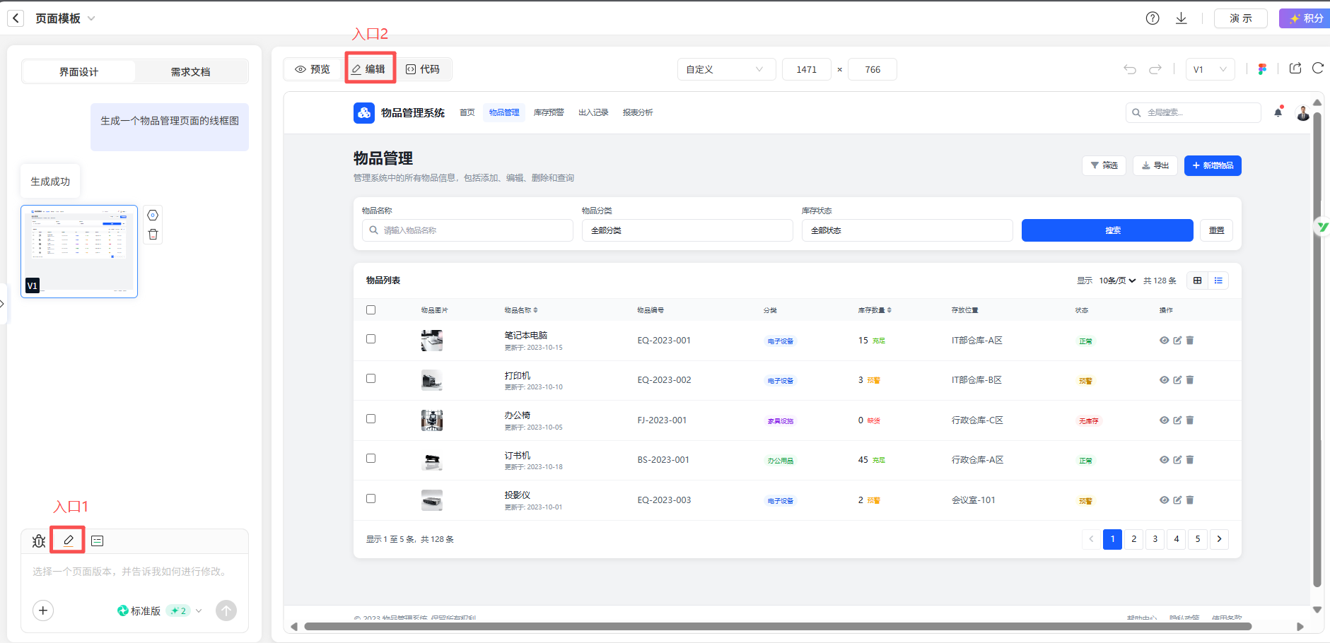 - 点击输入框的 “编辑”图标或者切换顶部编辑tab,进入编辑模式。