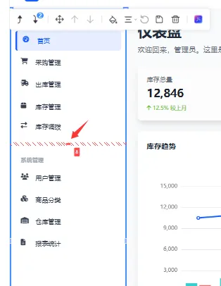 - 同理,若调整上下菜单间距,只需要选中整个菜单,鼠标放置到间距中间的红色竖条上,按住鼠标左键上下拖动改变间距
